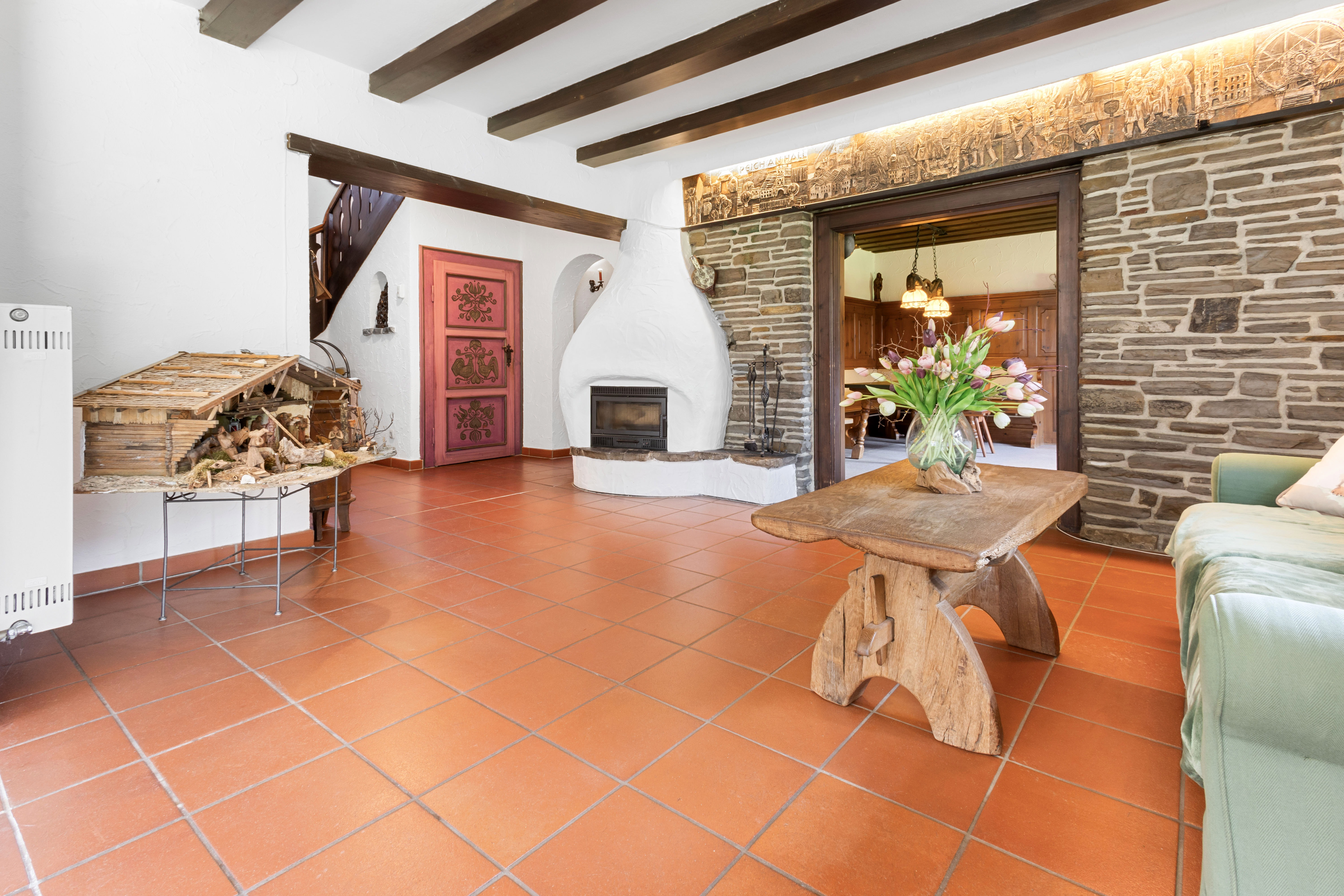 Die zahlreichen Zimmer des Hauses verteilen sich auf verschiedene Etagen und bieten ausreichend Platz für individuelle Gestaltungsmöglichkeiten. Mit einer separaten Küche, einem geräumigen Wohnzimmer und mehreren Schlafzimmern ist genügend Raum für die individuellen Bedürfnisse einer Familie vorhanden. Der Balkon bietet zudem einen schönen Ausblick auf die Umgebung und ist ideal für gemütliche Abende im Freien.