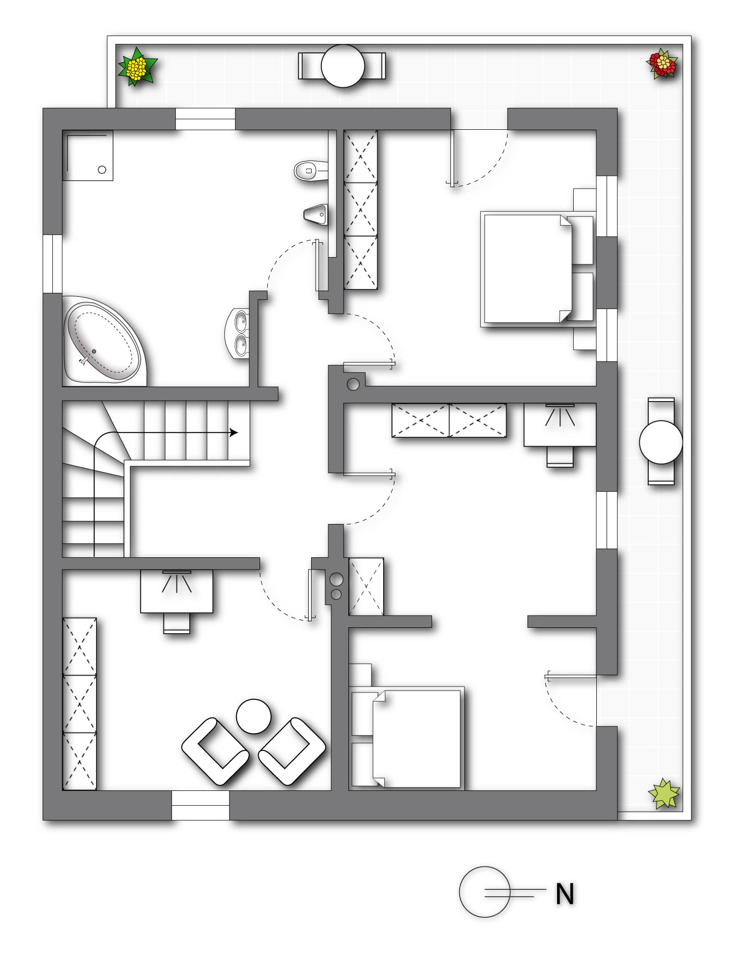 - Ausstattung des Bades Badewanne Dusche Fenster