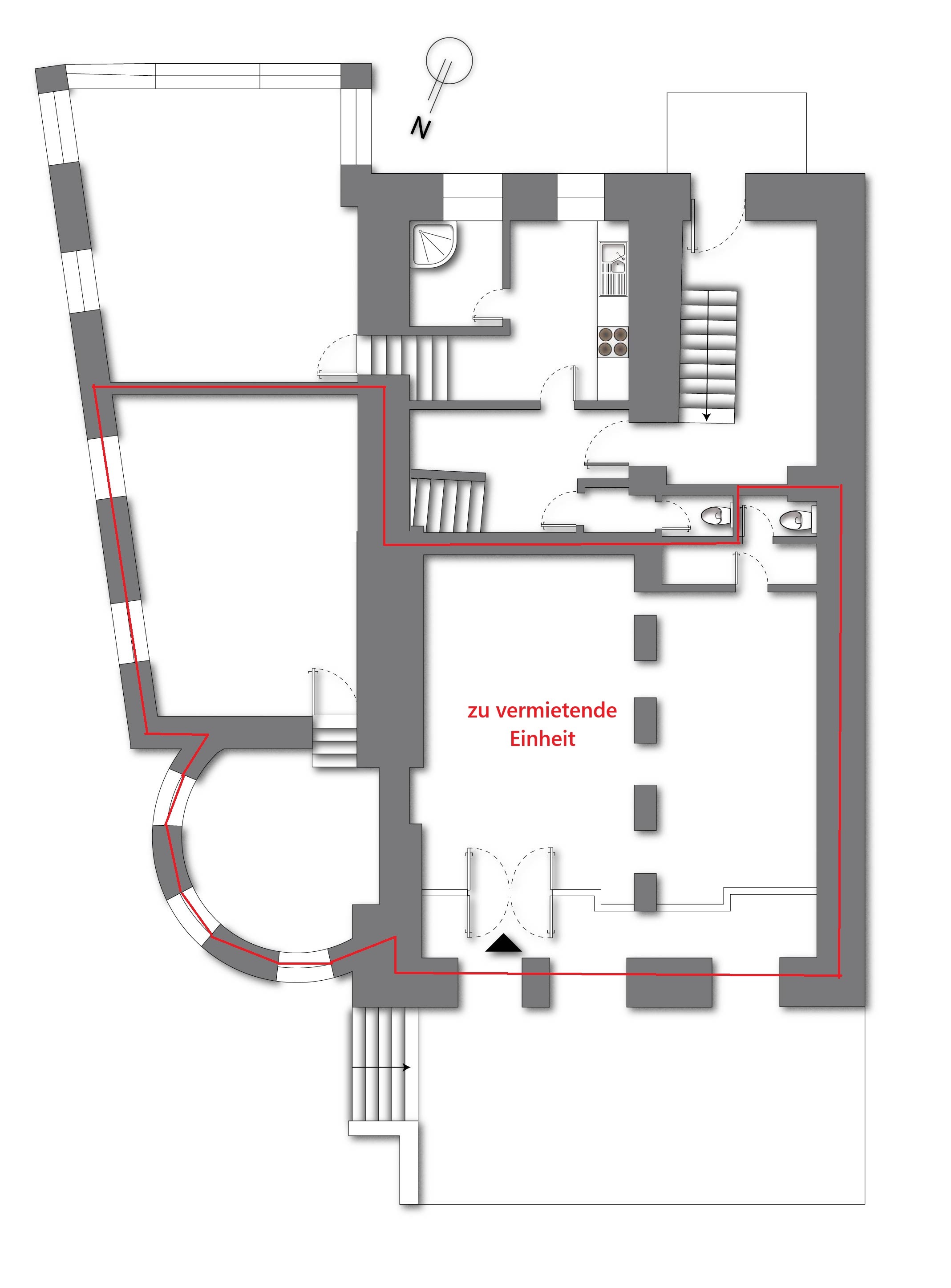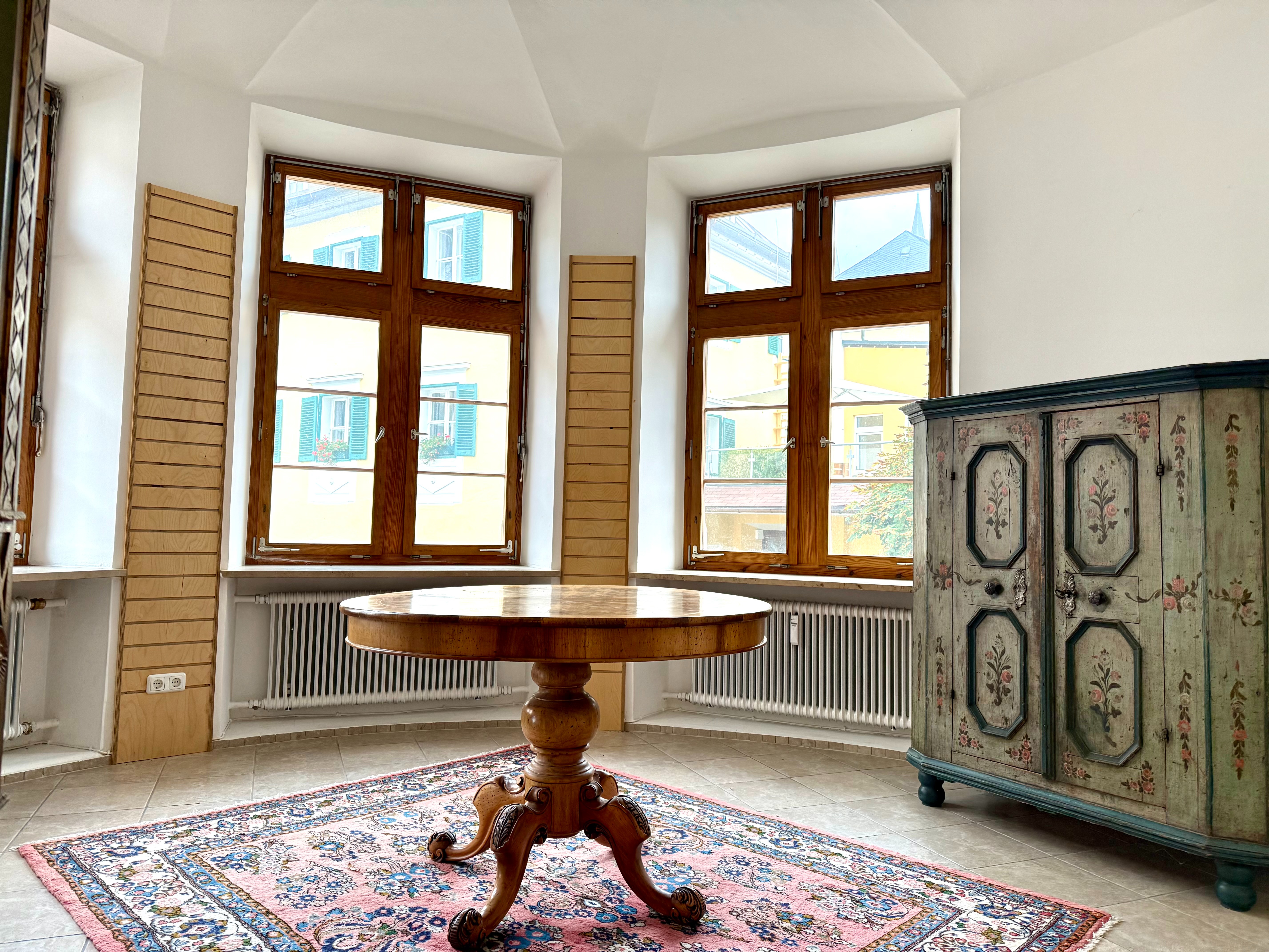 Beim Betreten der Räumlichkeiten wird man von einem großzügigen Eingangsbereich empfangen, der mit seinem historischen Charme überzeugt. Durch die großen Fenster fällt viel Tageslicht in die Verkaufsfläche und schafft eine angenehme Arbeitsatmosphäre. Die einzelnen Verkaufsbereiche sind großzügig gestaltet und bieten ausreichend Platz für Präsentationen und Kundeninteraktion.