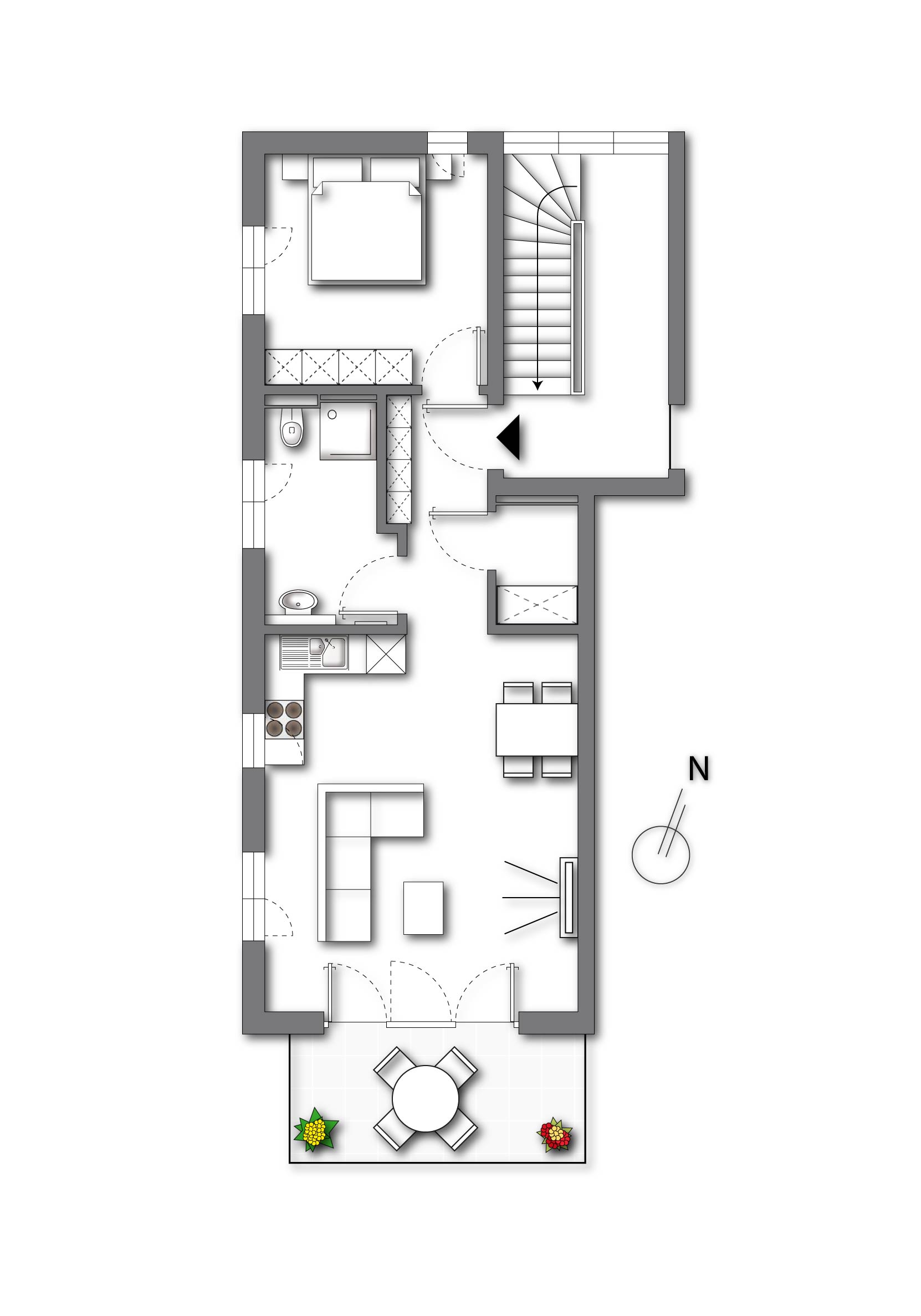 Die Wohnung verfügt über ein Schlafzimmer, ein Badezimmer, eine Wärmepumpenheizung und eine Terrasse. Der helle und offene Wohnbereich lädt zum Verweilen ein und bietet genügend Platz für gemütliche Abende. Der Keller bietet zusätzlichen Stauraum für persönliche Gegenstände.